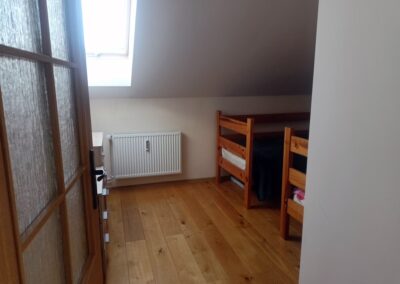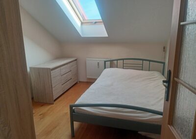 Poziom drugi położony jest na IV piętrze (poddaszu), posiada powierzchnię 39,00 m2, na którą składa się pokój dzienny z aneksem kuchennym, 2 sypialnie, łazienka z WC i przedpokój.